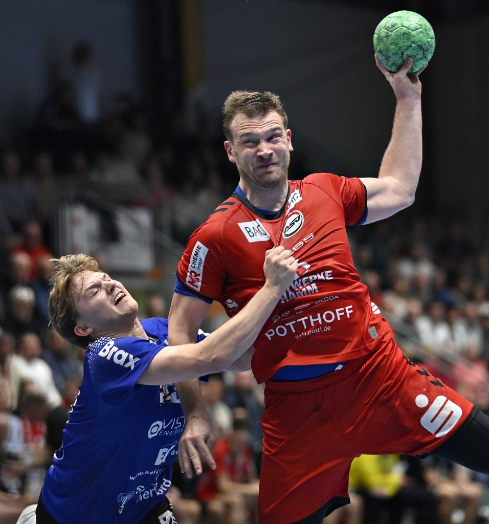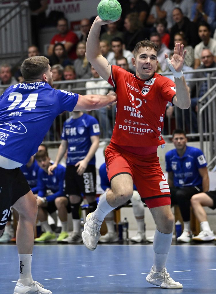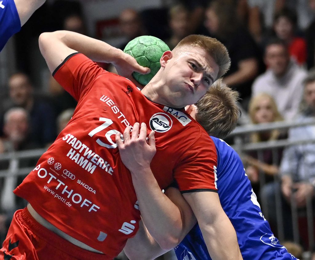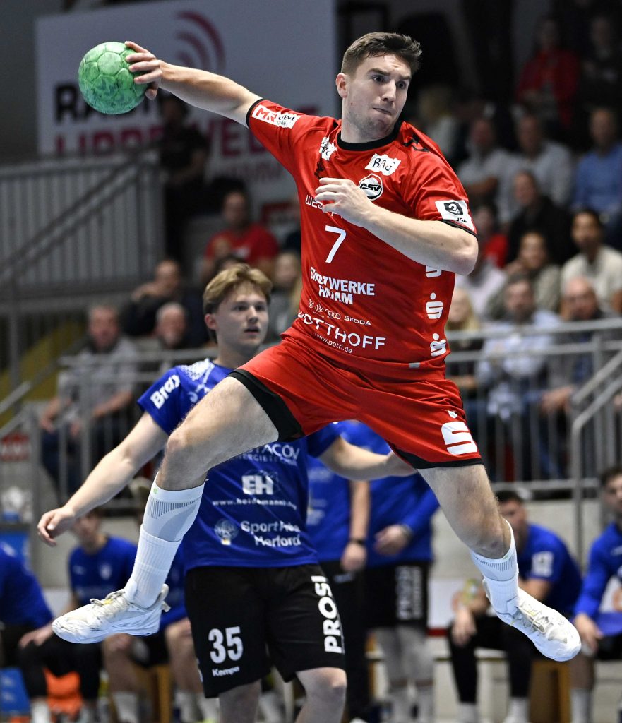 Nach einer ASV-Auszeit gelang den Gästen noch ein Ballgewinn: Mathis Borgmann erhöhte auf 11:15. In der Abwehr agierten die Westfalen zu lückenhaft, im Angriff scheiterte der ASV ein ums andere Mal am bärenstarken TuS-Torwart Mika Brokmeier, der im ersten Abschnitt neun Bälle mehr parierte als sein Gegenüber Marcos Colodeti. „Und dennoch gehen wir nur mit einem Tor Rückstand in die Pause“, benennte Lommel den wichtigsten positiven Aspekt der ersten 30 Minuten. „Wenn es uns gelingt, mit dieser Führung in die zwei Halbzeit zu gehen, kann es noch etwas anders laufen“, meinte TuS-Coach Rafael Jacobsmeier. Doch Pawel Krawczyk und zweimal Bornemann warfen den ASV auf 16:16, zehn Sekunden vor der Pause traf Hofmann für Spenge zum 16:17-Pausenstand.