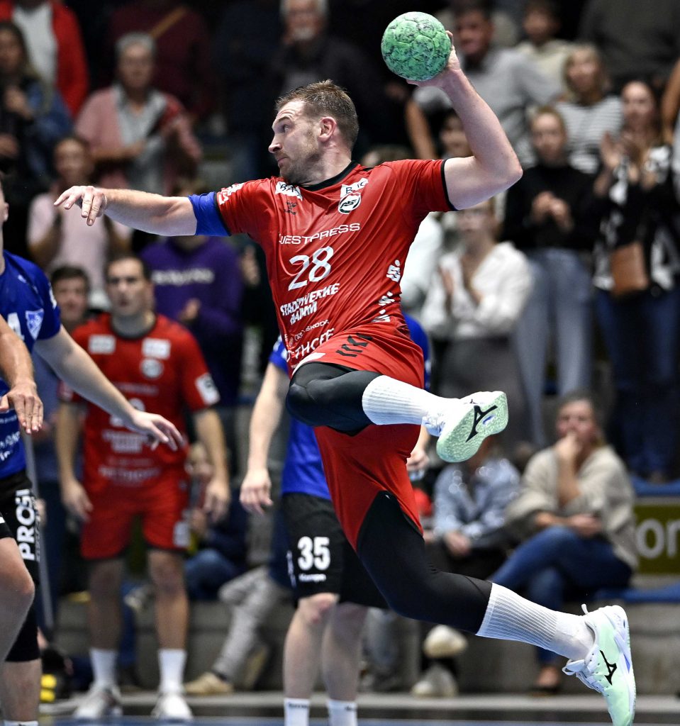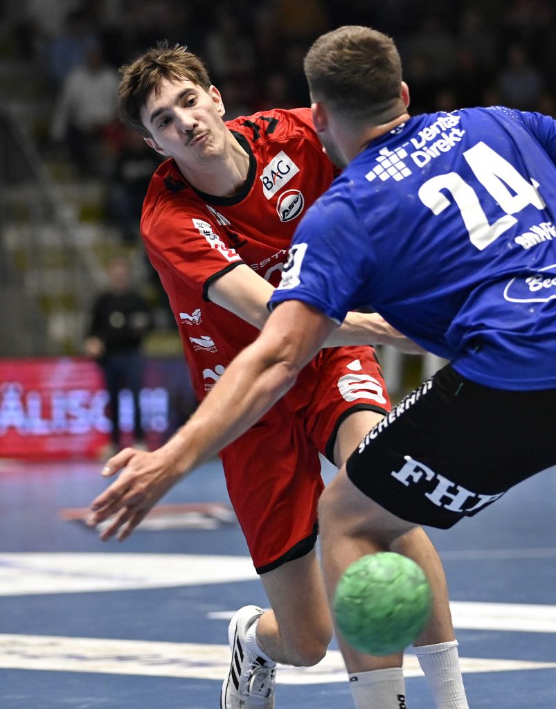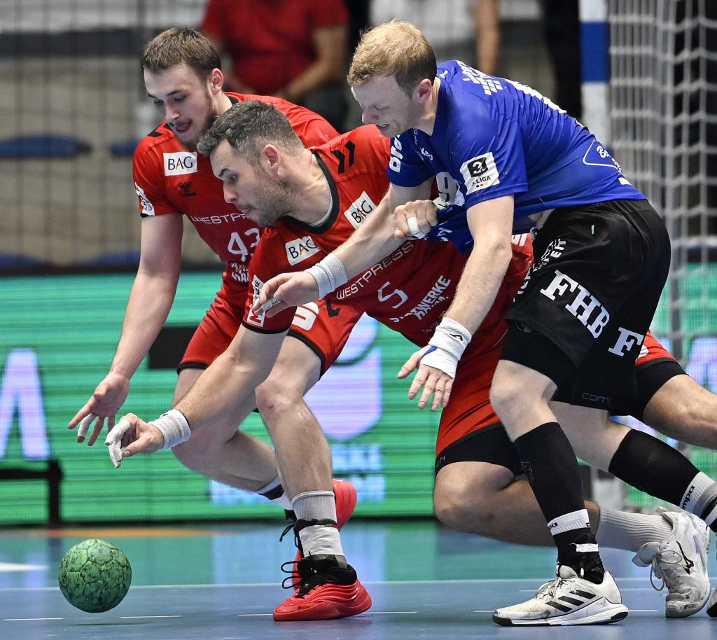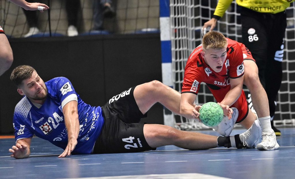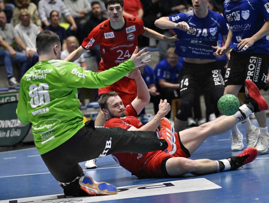 Denn die Gäste erwiesen sich schnell als der erwartet unbequeme Gegner. Beide Mannschaften kamen gut in die Partie. Bis zum 11:11 in der 19. Spielminute wechselten die Führungen. In einem von Anfang an sehr intensiv geführten und torreichen Spiel mit offensiven Deckungsvarianten gab es bis dahin nur eine Zeitstrafe gegen Keno Jacobs. Die nächste Strafe erhielt dann Alexander Coßmann, der nach einem Griff in den Wurfarm direkt mit der Roten Karten hinausgestellt wurde. Zuvor hatte Spenge durch Kreisläufer Gordon Graefe und Tim Kloor die erste Zwei-Tore-Führung des Abends hergestellt. Per Siebenmeter erhöhte Mats Koester dann auf 11:14.