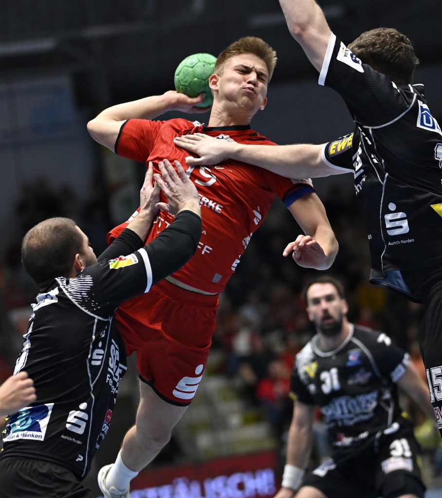 Umso bitterer, dass sich die Gäste im Spielverlauf auch noch einige durchaus völlig unnötige Aktionen leisteten, die mit Zeitstrafen geahndet wurden. So wie durch Toptorschütze Niklas Gautzsch, der den Gegner beim Tempogegenstoß foulte und folgerichtige vom Feld musste, und wie durch Jan Keno Jacobs, der Siebenmetertorschütze Renke Rohrweber umrempelte.